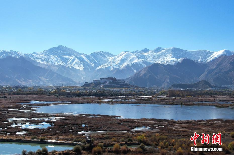 位于西藏拉薩的拉魯濕地國家級自然保護區(qū)是目前世界上海拔最高的城市內(nèi)陸天然濕地,保護區(qū)總面積12.2平方公里,被譽為“拉薩之肺”。初冬時節(jié),拉魯濕地與遠處的布達拉宮、周圍的雪山構(gòu)成一幅壯美畫卷。圖為11月8日,拉魯濕地景色。(無人機照片)