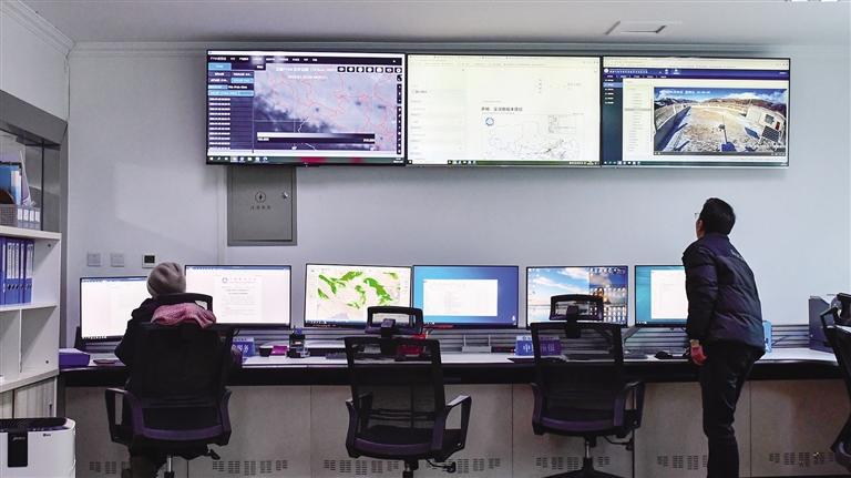 西藏自治區(qū)氣象臺(tái)工作人員觀察氣象臺(tái)站實(shí)況。資料圖