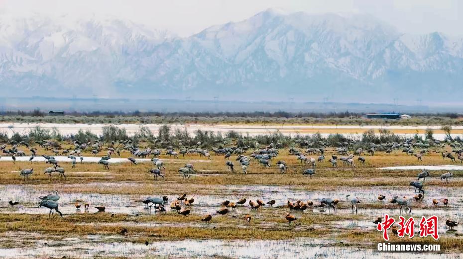 連日來,成群灰鶴聚集于青海省海西蒙古族藏族自治州都蘭縣巴隆鄉(xiāng)鐵絲蓋地區(qū)?;寅Q是國家二級(jí)重點(diǎn)保護(hù)野生動(dòng)物。圖為灰鶴等野生鳥類群在濕地休憩。