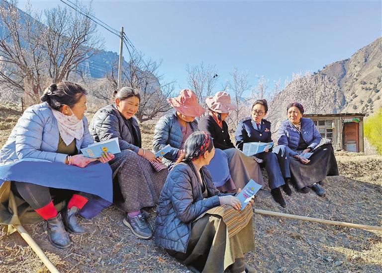 圖為朗縣稅務(wù)局工作人員走進(jìn)田間地頭,向農(nóng)牧民群眾宣傳稅費(fèi)優(yōu)惠政策。記者 袁海霞 攝
