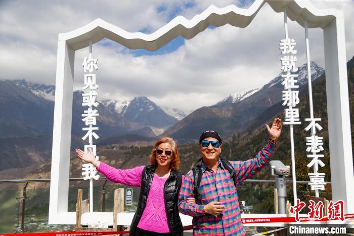 3月28日,西藏自治區(qū)林芝市,游客在雅魯藏布大峽谷旅游景區(qū)以南迦巴瓦峰為背景拍照留念。雅魯藏布大峽谷全長504.6公里,最深處6009米,被認為是世界上長度最長、深度最深的大峽谷。中新社記者 馬銘言 攝