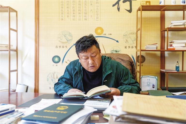 洛桑英巴抽空學(xué)習(xí)生態(tài)修復(fù)知識。記者 桑旦歐珠 攝