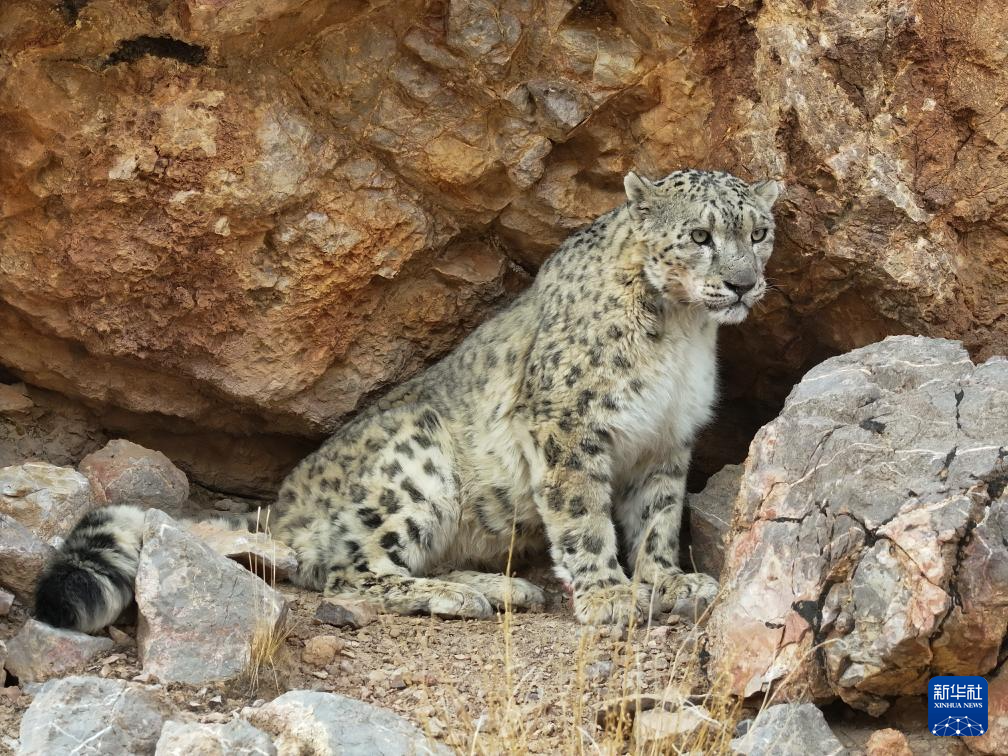 西藏阿里改則縣改則鎮(zhèn)玉多村附近巖山區(qū)域拍攝到的國家一級保護(hù)動(dòng)物雪豹(4月18日攝)。