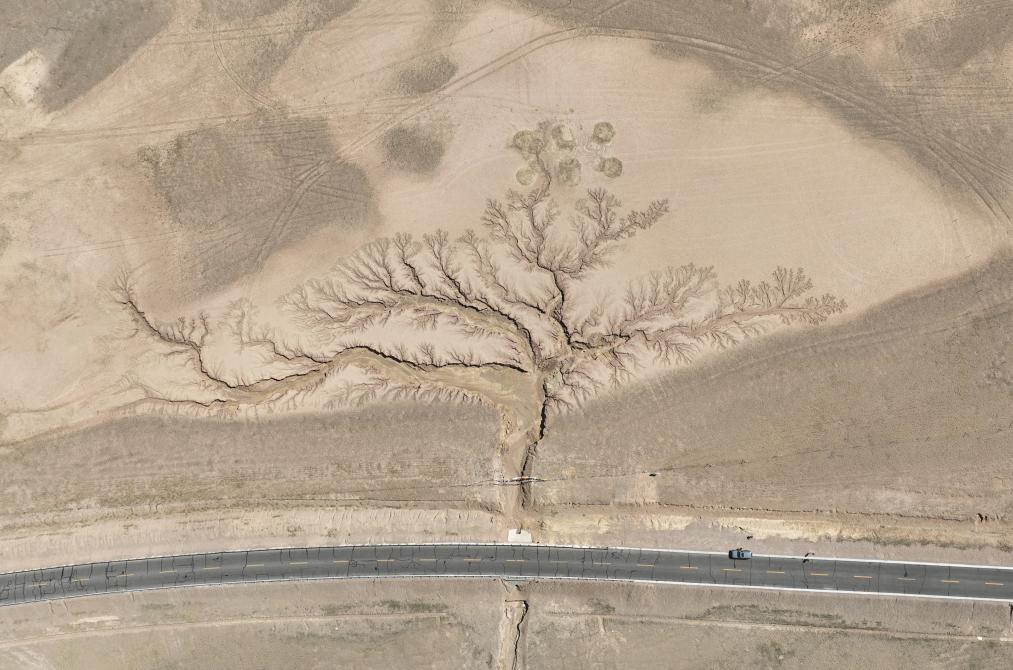 2023年4月22日在西藏自治區(qū)那曲市拍攝的“天空之樹”景觀(無人機照片)。新華社記者姜帆攝