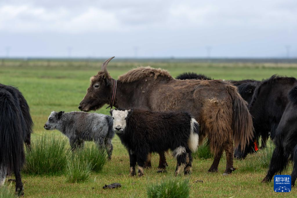 7月22日拍攝的瑪旁雍錯濕地上的牦牛。新華社記者 旦增尼瑪曲珠 攝