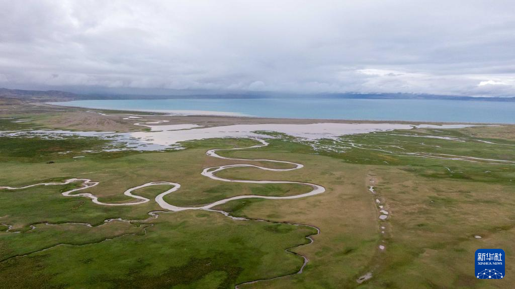7月22日拍攝的瑪旁雍錯濕地一景(無人機(jī)照片)。新華社記者 旦增尼瑪曲珠 攝