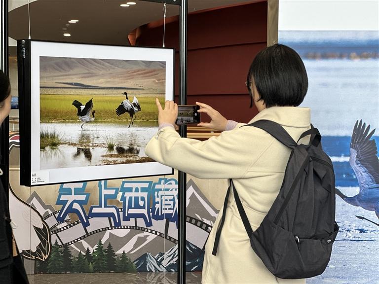 據(jù)介紹,黑頸鶴是世界上唯一一種在高原地區(qū)繁殖、生活的鶴類。近年來,隨著全區(qū)生態(tài)保護(hù)力度不斷加強(qiáng),黑頸鶴種群數(shù)量穩(wěn)步增長、棲息地范圍持續(xù)擴(kuò)大。今年2月,黑頸鶴當(dāng)選拉薩市鳥。本次巡展在首次“天上西藏·鶴鶴有鳴”主題攝影展的基礎(chǔ)上,進(jìn)一步拓展展覽內(nèi)容,豐富展覽形式,旨在以“高原精靈”黑頸鶴為媒介,積極探索“文旅+生態(tài)”融合發(fā)展的新路徑,力爭將“天上西藏·鶴鶴有鳴”打造成高原文旅特色品牌。未來我區(qū)將打造更多特色鮮明的觀鳥線路、旅游攝影點(diǎn),發(fā)展綠色旅游和“觀鳥經(jīng)濟(jì)”,吸引更多游客走進(jìn)西藏,領(lǐng)略西藏獨(dú)特的生態(tài)魅力和人文風(fēng)情。