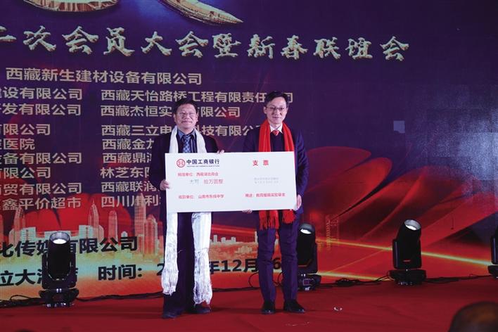 活動(dòng)尾聲,西藏湖北商會(huì)現(xiàn)場(chǎng)為山南市東輝中學(xué)捐贈(zèng)教育援藏獎(jiǎng)勵(lì)基金10萬(wàn)元,用以資助山南市教育事業(yè)的發(fā)展。