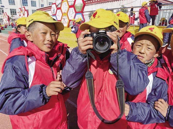 草原上的孩子“野”慣了,熱愛足球,旺杰群培老師便加入進(jìn)來,給他們帶去了一節(jié)足球課。小小的足球,載著孩子們大大的夢想;他們喜歡音樂,仁增老師就帶著充滿詩情畫意的民謠歌曲,還有節(jié)奏感十足的舞蹈來到這里,跟孩子們熱情互動(dòng);要培養(yǎng)孩子們的國學(xué)情懷,陳明桃老師花費(fèi)心思備課,設(shè)計(jì)方案,精彩的課程最終贏得了陣陣掌聲;美術(shù)能讓孩子們天馬行空的思維得到釋放,年輕的范思宇就帶著草原的驕傲——亞運(yùn)圣火采集女神像來到課堂上,和孩子們一起描繪心中最美“女神”……大朋友用一節(jié)節(jié)精彩的課程帶著小朋友感知美好世界