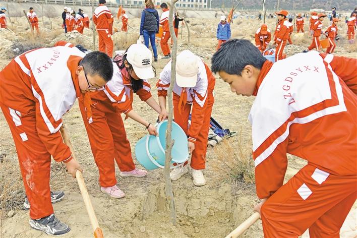 西藏林芝廣東實(shí)驗(yàn)學(xué)校組織學(xué)生參加義務(wù)植樹活動