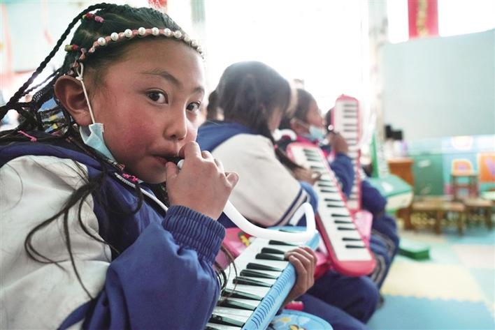 口風(fēng)琴擁有良好的和聲能力,廣泛應(yīng)用于各類音樂中。但是,對(duì)于果組小學(xué)的孩子們來說,這是他們第一次見到口風(fēng)琴。布扎西是該小學(xué)三年級(jí)的一名小學(xué)生,他是校園“小歌星”,每年六一兒童節(jié)學(xué)校舉行文藝匯演時(shí),他都要演唱自己的拿手歌曲——《我的家鄉(xiāng)》。第一次見到口風(fēng)琴,布扎西非常開心:“謝謝柏雪老師送給我們的禮物,我以后會(huì)好好學(xué)習(xí),爭(zhēng)取早日吹奏《小星星》!”