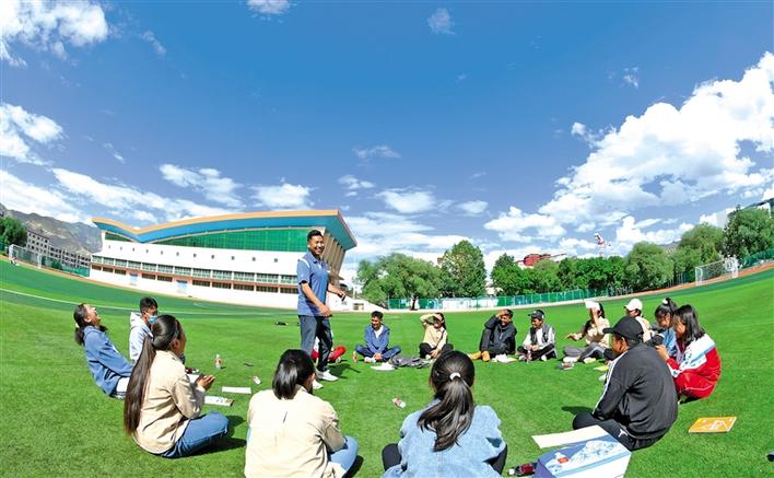 7月5日,拉薩中學(xué)高三學(xué)生在足球場上跳起歡樂的鍋莊,他們通過這種方式緩解高考前的緊張氣氛。[詳細(xì)] -