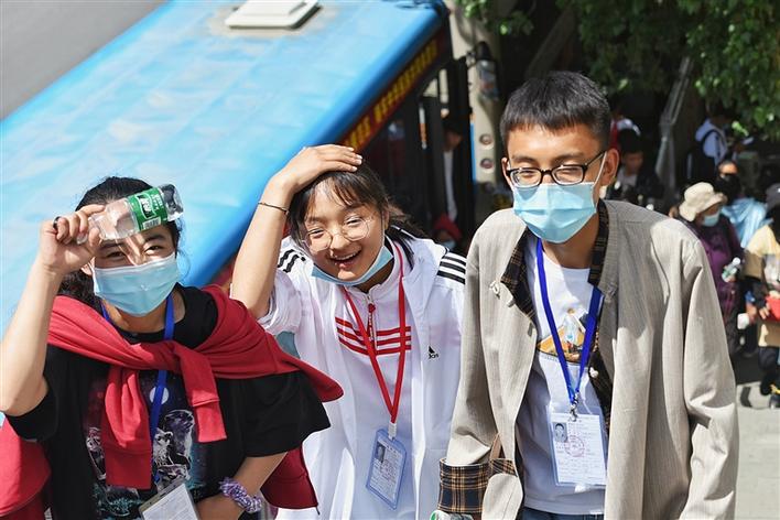7月9日,西藏拉薩阿里河北完全中學高三學生考完民族語言文字藏語文考試后,圓滿告捷該校迎戰(zhàn)的首個高考。圖為高考考生走出考點。 中新社記者 貢桑拉姆 攝