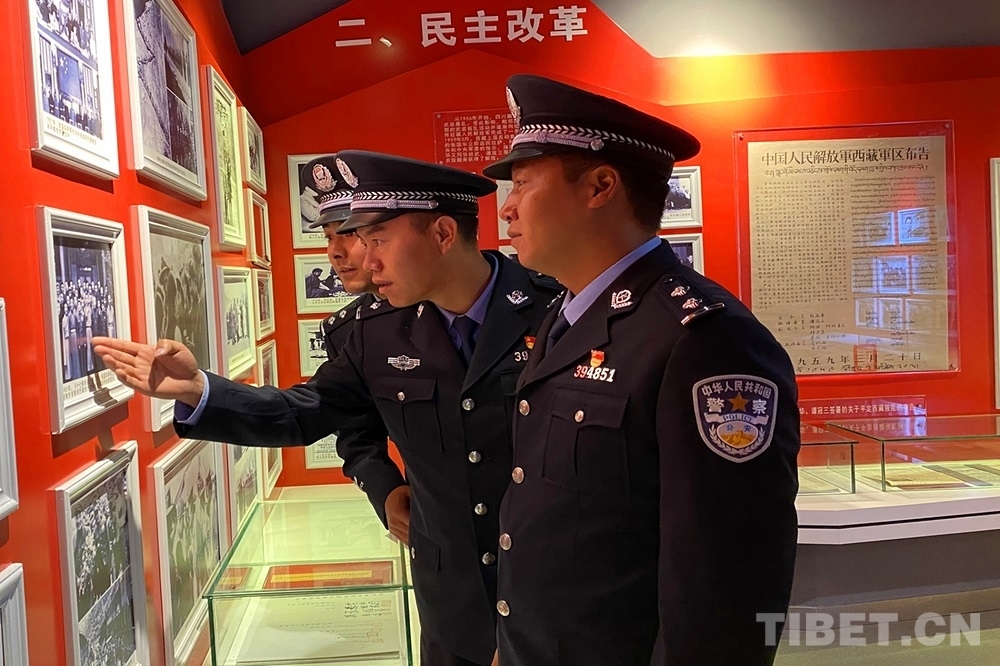 圖為浪卡子邊境管理大隊開設(shè)警營講堂,帶領(lǐng)民警走近國恥歷史 攝影:楊敬臣
