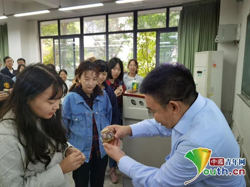 圖為陳學(xué)偉教授為同學(xué)們講解如何培育“種子精靈”。中國青年網(wǎng)通訊員 宋翎瑞 攝