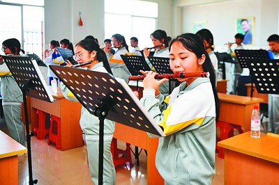 湖南省湘西土家族苗族自治州瀘溪縣第五中學的學生在練習演奏笛子。王將攝/光明圖片