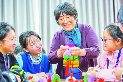 圖為10月26日,在“非遺課程基地”教室內(nèi),學生在學習非遺如皋香袋制作技藝。徐慧攝/光明圖片