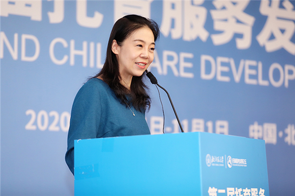 稚夢嬰幼學苑CEO孫硯冰發(fā)表《識時順勢 共育未來》主題報告。