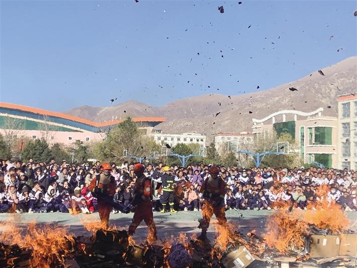拉薩中學(xué)舉行消防安全應(yīng)急演練