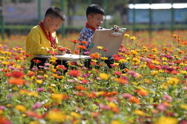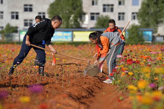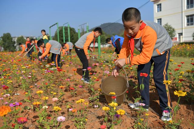 今年暑假剛剛到任江西省宜春市袁州區(qū)寨下鎮(zhèn)中心小學(xué)的殷大福校長(zhǎng)看著教學(xué)樓前一大片長(zhǎng)滿雜草的荒地,希望能在上面做點(diǎn)文章,讓孩子們課后有個(gè)休閑活動(dòng)的好去處。于是,他和老師們一起平整荒地,種下百日草的種子,開辟出花田和草坪。如今,昔日的荒地上已綻放出一片絢爛的花海,學(xué)生們的學(xué)習(xí)生活因此更加豐富多彩。美術(shù)課、十字繡興趣小組的同學(xué)紛紛到花田邊寫生、采風(fēng),孩子們?cè)诰G地里玩耍訓(xùn)練。每周,殷大福校長(zhǎng)還會(huì)組織不同班級(jí)的學(xué)生下田勞動(dòng),為鮮花松土、施肥、澆水,讓他們親身體驗(yàn)守護(hù)生活中美好的滋味。呵護(hù)、陪伴、欣賞……一顆顆真善美的種子在學(xué)生們的心底悄然種下。