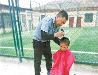 才旦多吉給學生理發(fā)。