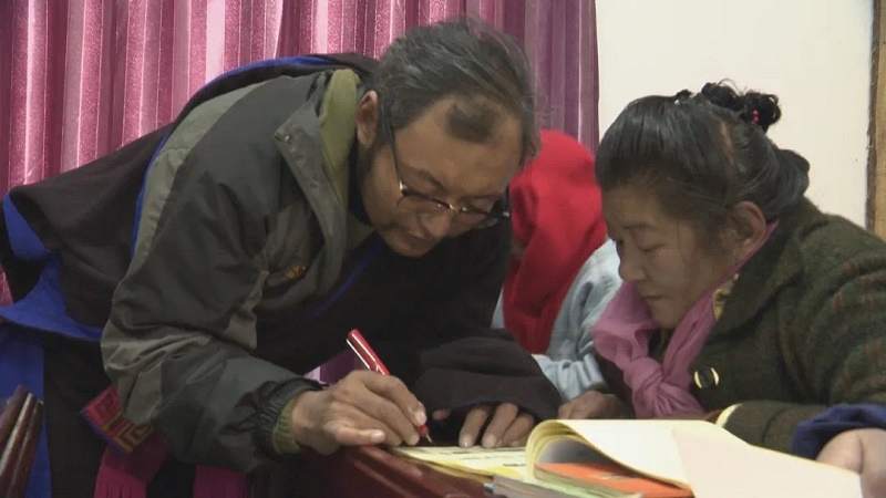 年末的安多早已步入寒冬,忙碌的時節(jié)已接近尾聲。隨著牧閑時節(jié)的到來,帕那鎮(zhèn)一村的“夜?!睙狒[非凡,不時傳來一陣陣讀書聲。每年這個時候,帕那鎮(zhèn)一村宣傳委員嘎達會按時組織牧民們一起補習他們曾經(jīng)落下的藏文、語文、數(shù)學基礎和政策知識、科學文化、法律法規(guī)等知識內(nèi)容。