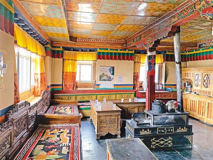 次仁玉珍今年60歲,家里有兩個女兒。走進次仁玉珍家,干凈的小院、寬敞的房子、屋內各式家具家電一應俱全?!耙郧?,家里的房子又小又破,只有幾十平方米,每逢下雨,屋子還漏雨。2016年,政府幫我們翻修擴建了房子,我們自己只出了5000元,現(xiàn)在的新房有250平方米左右?!贝笈畠捍稳恃虢鹫f。