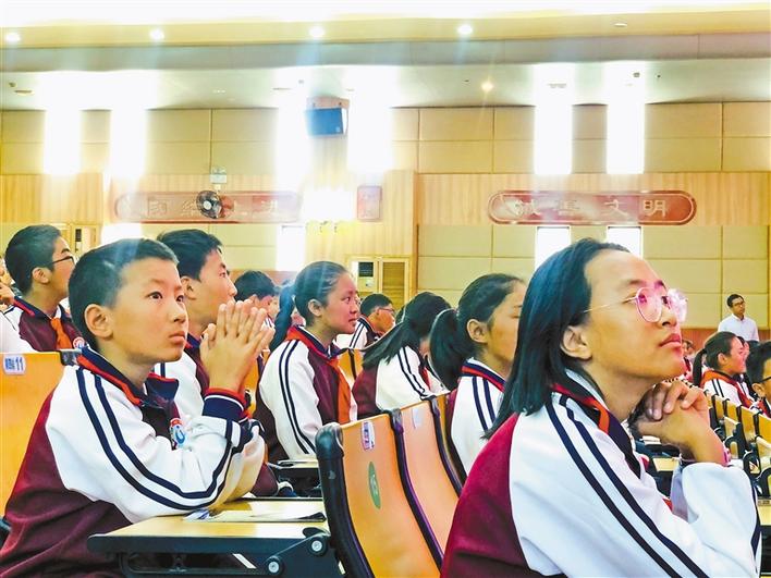 珠海四中內(nèi)地西藏班師生認(rèn)真聽(tīng)取報(bào)告。