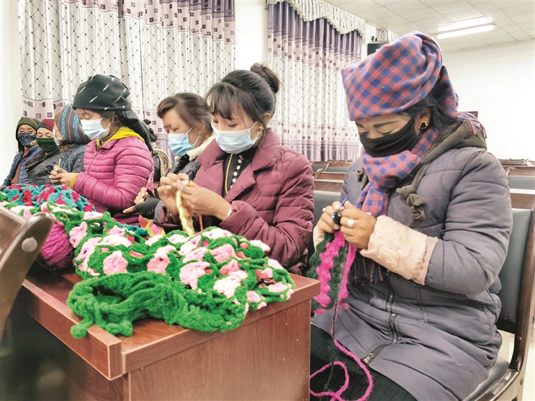 近日,在邦堆鄉(xiāng)克日村,村婦聯(lián)組織20余名婦女集中開展了“巾幗夜校領(lǐng)學(xué)”活動(dòng),學(xué)員們現(xiàn)場進(jìn)行手工編織。今年57歲的歐珠措姆2019年開始學(xué)習(xí)手工編織,現(xiàn)在已經(jīng)能夠編織成品進(jìn)行銷售了。據(jù)了解,克日村婦女手工編織成員經(jīng)過兩年培訓(xùn),目前均已能夠生產(chǎn)出單個(gè)產(chǎn)品。通過售賣產(chǎn)品,農(nóng)閑時(shí)期平均每人至少能增加800元的收入。