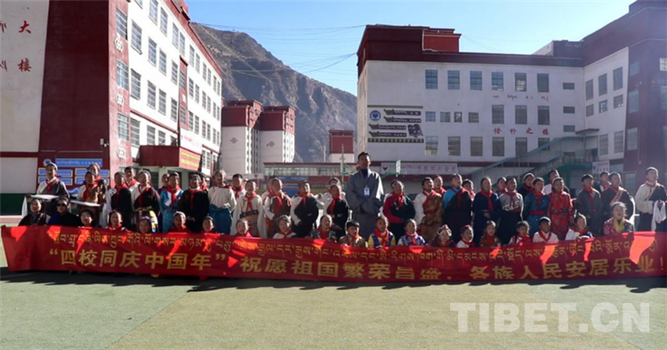 活動(dòng)中,孩子和老師們都穿著民族特有的節(jié)日盛裝,臉上洋溢著幸福的笑容,手舉象征著美好祝福的白色哈達(dá),發(fā)自內(nèi)心地說出了“祝祖國繁榮昌盛”“祝中華兒女合家歡樂、身體健康、扎西德勒”等純潔而又真切的祝福。
