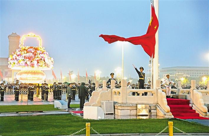 10月1日清晨,隆重的升國旗儀式在北京天安門廣場舉行,慶祝中華人民共和國成立71周年。新華社記者 任超 攝