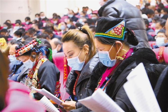 圖為會議代表聽取和審議日喀則市政府工作報告的情景。張斌 楊梨榮 攝