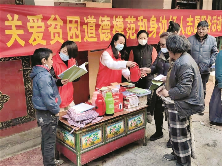 28日,拉薩市委宣傳部機(jī)關(guān)黨支部志愿服務(wù)隊(duì)深入我市道德模范和身邊好人家庭,開展慰問幫扶、送溫暖、獻(xiàn)愛心活動,還清掃街道,營造了干凈整潔的環(huán)境。