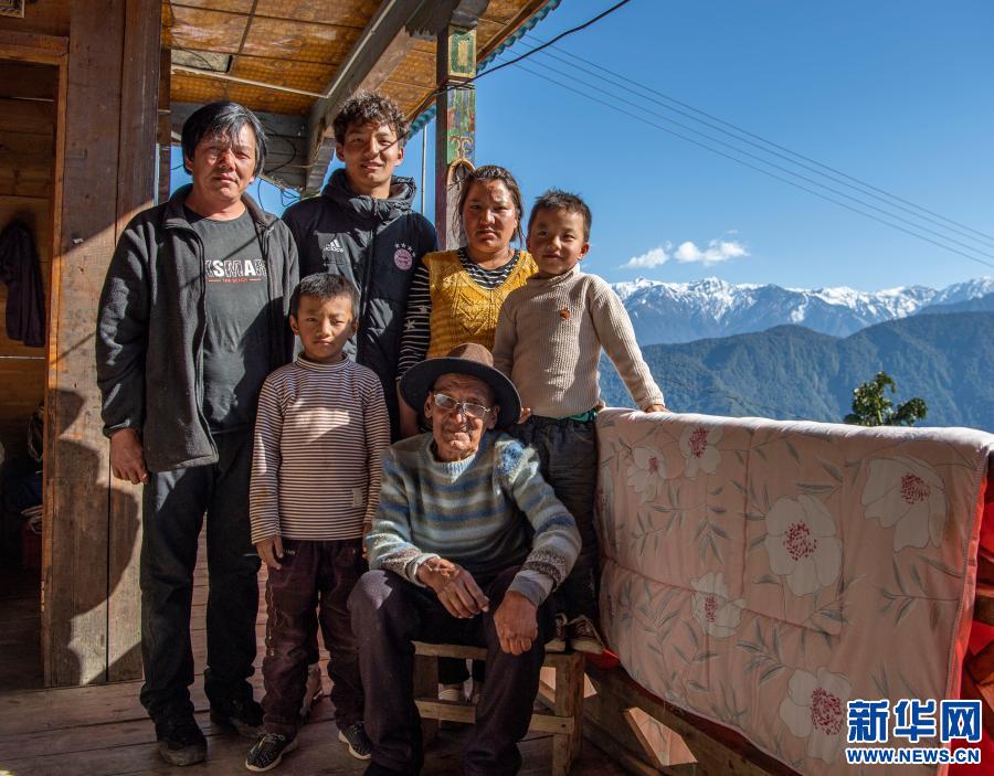 在位于西藏林芝市墨脫縣德興鄉(xiāng)巴登則村的家中,旺前羅布一家人合影留念(2月9日攝)。新華社記者 孫非 攝