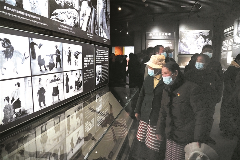 揭牌儀式結(jié)束后,現(xiàn)場人員有序參觀林周縣黨員黨性愛國主義教育基地《青春如火 高原如歌》大型展覽。