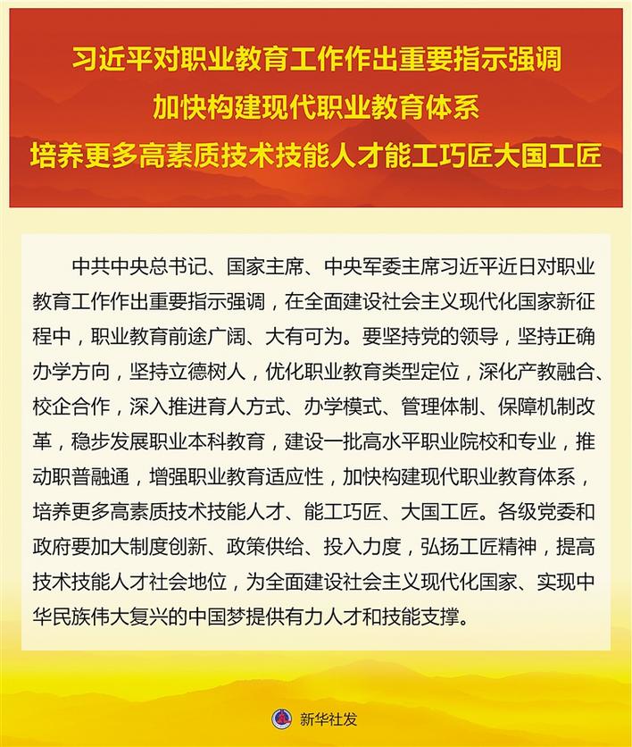 隨著各地深化產(chǎn)教融合、校企合作,深入推進育人方式、辦學模式、管理體制、保障機制改革,更多高素質(zhì)技術(shù)技能人才、能工巧匠、大國工匠將從職業(yè)院校中走出來。