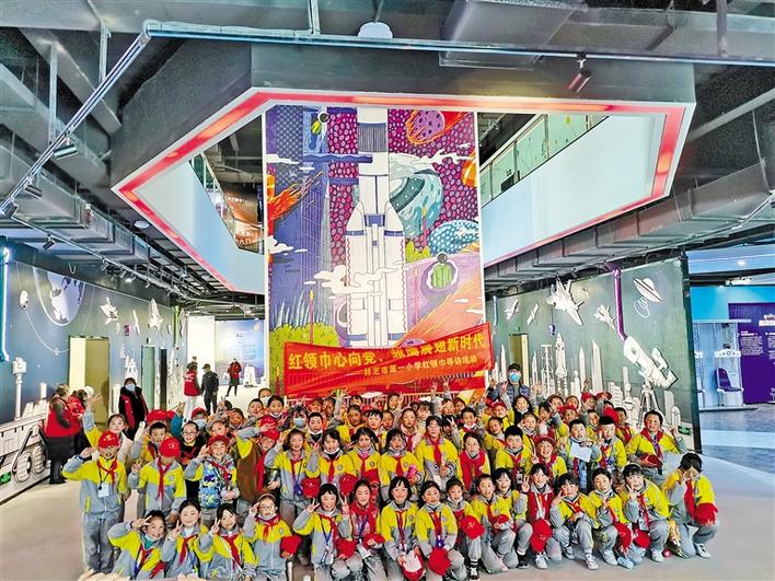 圖為林芝市第一小學(xué)的學(xué)生們?cè)谇嗌倌昕破罩行膮⒂^并合影留念。王珊 張猛 攝
