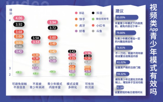 面對(duì)目前各平臺(tái)青少年模式良莠不齊的現(xiàn)狀,參與測(cè)評(píng)的大學(xué)生也有自己的見(jiàn)解。在剛剛畢業(yè)1年的95后教師姜煒眼里,部分軟件青少年模式下推薦的內(nèi)容不能滿足青少年的興趣?!昂每匆曨l給我推薦的都是動(dòng)畫片,我教的高中生不太感興趣;小紅書(shū)的青少年模式入口有點(diǎn)難找,找到以后推薦給我的都是考研相關(guān)內(nèi)容,對(duì)未成年人來(lái)說(shuō)可讀性不高;斗魚(yú)、虎牙這類直播平臺(tái),本身大部分都是游戲類內(nèi)容,青少年模式下幾乎大多數(shù)內(nèi)容都會(huì)被屏蔽,我相信任何使用這兩款軟件的青少年都不愿意使用青少年模式?!辈贿^(guò),他給抖音和B站打了高分?!斑@兩款軟件的推送內(nèi)容除了有興趣類的,還有一些名師課程,符合青少年的興趣?!?/p>