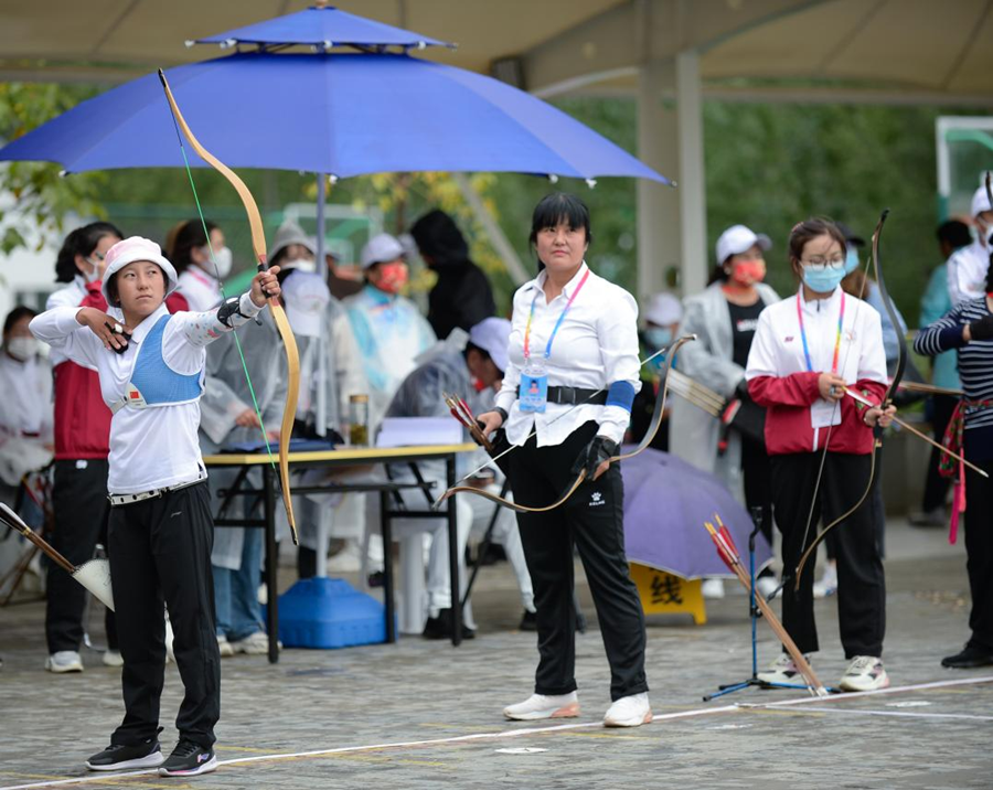 凝神站立搭箭,扣弦開(kāi)弓,離弦之箭命中靶心。正在青海省海東市舉行的青海省第七屆少數(shù)民族傳統(tǒng)體育運(yùn)動(dòng)會(huì)射箭項(xiàng)目上,多名面孔稚嫩的中學(xué)生首次和成年人同場(chǎng)競(jìng)技,成為本屆民族運(yùn)動(dòng)會(huì)一大亮點(diǎn)。