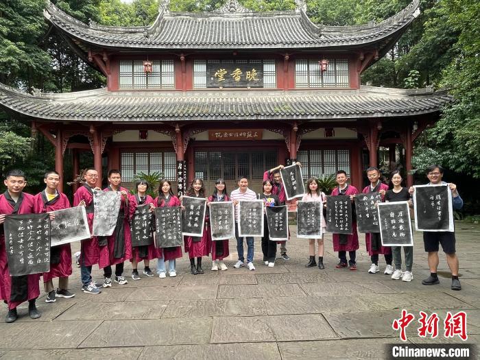 上香、祭文、行祭拜禮……在三蘇祠,臺灣大學(xué)生穿上漢服開展了祭拜活動,深入了解了中國傳統(tǒng)文化和禮儀。同時,在趣味拓片活動中,不少學(xué)生做了“但愿人長久,千里共嬋娟”字樣的拓片,表達(dá)了對中秋佳節(jié)的美好祝福。