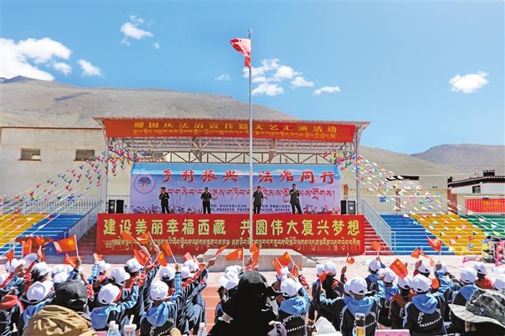 近日,西藏自治區(qū)高級人民法院聯(lián)合薩迦縣開展了以“鄉(xiāng)村振興·法治同行”為主題的法治宣講暨文藝匯演活動。各有關(guān)單位干部、各村群眾代表及中心小學(xué)部分師生共560余人參加活動。