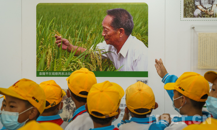 一張張照片中,一位正在觀察水稻的老人學(xué)生們幾乎都認(rèn)識。“我知道袁隆平爺爺,是他讓人們不再餓肚子?!薄半m然現(xiàn)在糧食產(chǎn)量增加了,但我們還是要記住不能浪費糧食?!?學(xué)生們你一言我一語爭相發(fā)言。