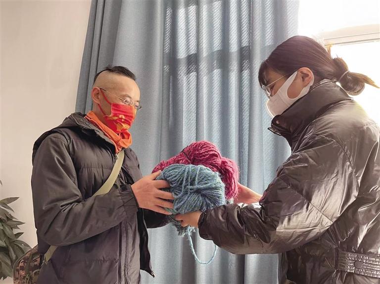 活動(dòng)啟動(dòng)后,有不少愛(ài)心人士前來(lái)領(lǐng)取毛線,大家精心挑選毛線的粗細(xì)、精心搭配花色,討論著針?lè)?,力?zhēng)為孩子們織出最好的針織品。