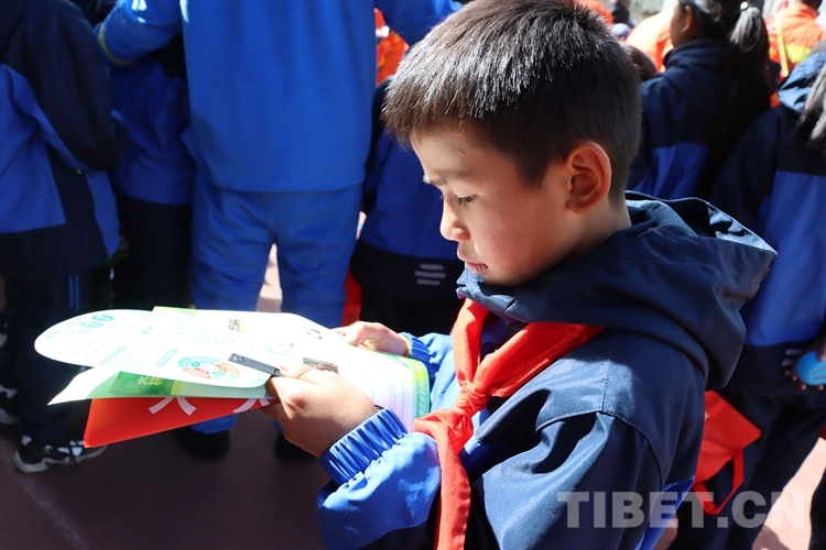 該小學(xué)相關(guān)負責人表示,通過森林火災(zāi)安全宣傳教育活動,進一步提升了全校師生的森林防火意識,提高了大家保護生態(tài)的安全意識。圖為小學(xué)生閱讀消防員發(fā)放的宣傳冊 (中國西藏網(wǎng) 通訊員/張林)