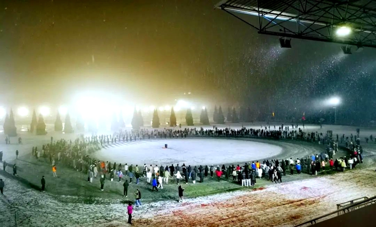 中國西藏網(wǎng)訊 紅燈高掛,年味已濃的古城咸陽,瑞雪紛紛。近日,還未離校返鄉(xiāng)的西藏民族大學(xué)學(xué)生們迎著紛揚(yáng)的雪花,踩著歡樂的音樂,自發(fā)匯集在操場,將思鄉(xiāng)情融入和諧美好的鍋莊舞中。