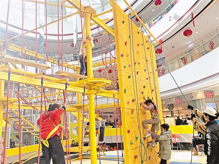 春節(jié)期間,孩子們按照自己的興趣,有的在家看電視、有的閱讀書籍、有的約幾個(gè)好友一起玩?!羞@樣一群孩子是通過參加各種運(yùn)動(dòng)來鍛煉自己的體能,豐富假期生活。在商場的攀巖館、蹦床館等趣味運(yùn)動(dòng)場所就可以看到他們的身影。