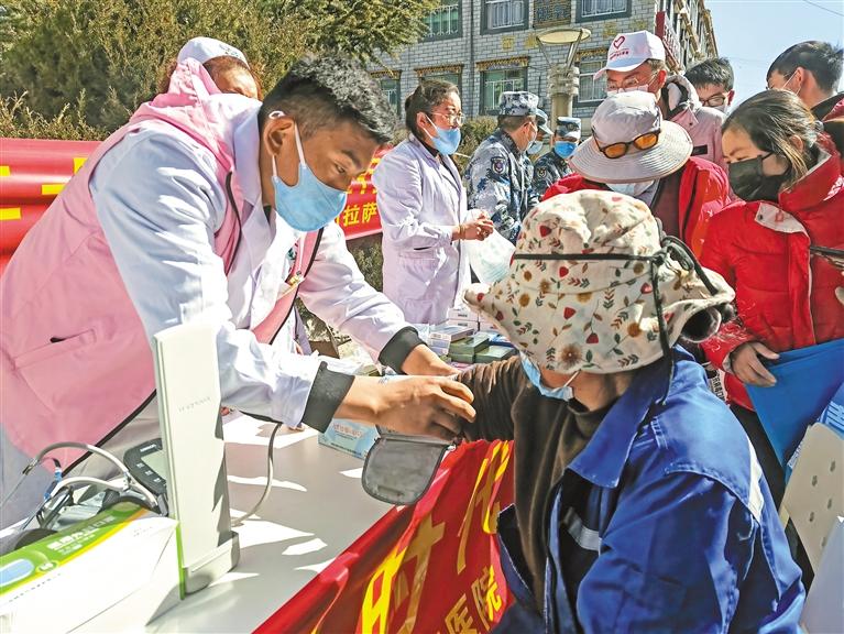 當(dāng)日,西藏拉薩警備區(qū)組織200余名官兵通過以工代勤的方式,深入大昭寺、八廓街道等地開展“學(xué)習(xí)雷鋒精神、喜迎黨的二十大”主題活動。活動主要包括義務(wù)巡診、發(fā)放藥品、清潔衛(wèi)生、消毒、理發(fā)等十余項(xiàng)。