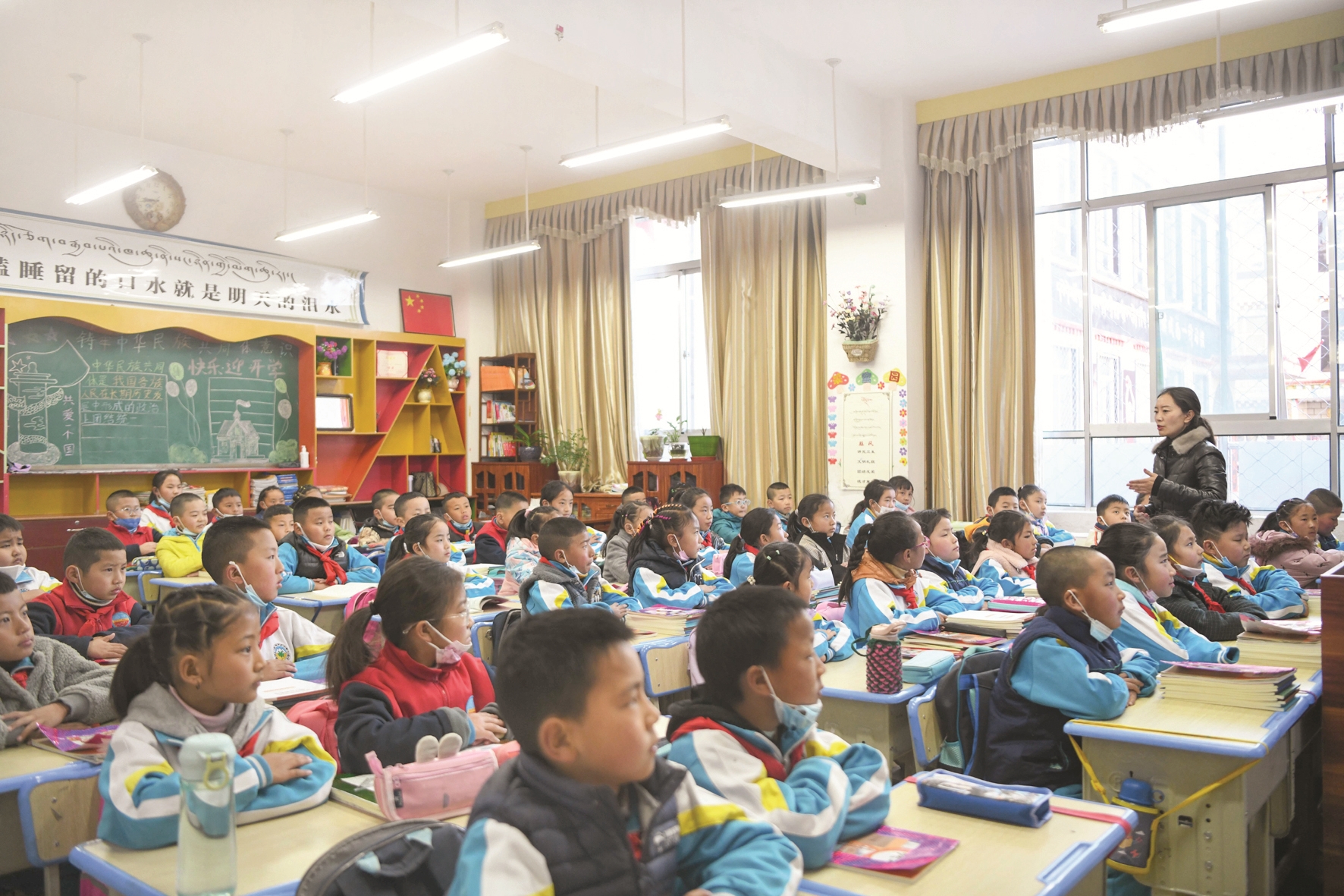 拉薩市城關(guān)區(qū)第二小學的同學們聆聽開學第一課