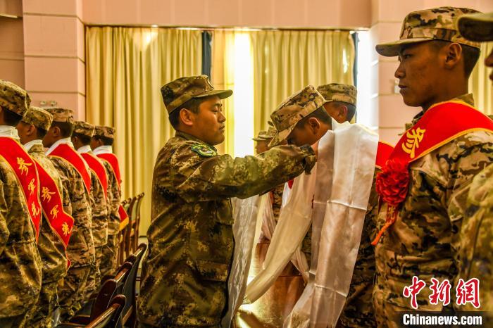圖為為入伍新兵獻哈達。 朱呈 攝