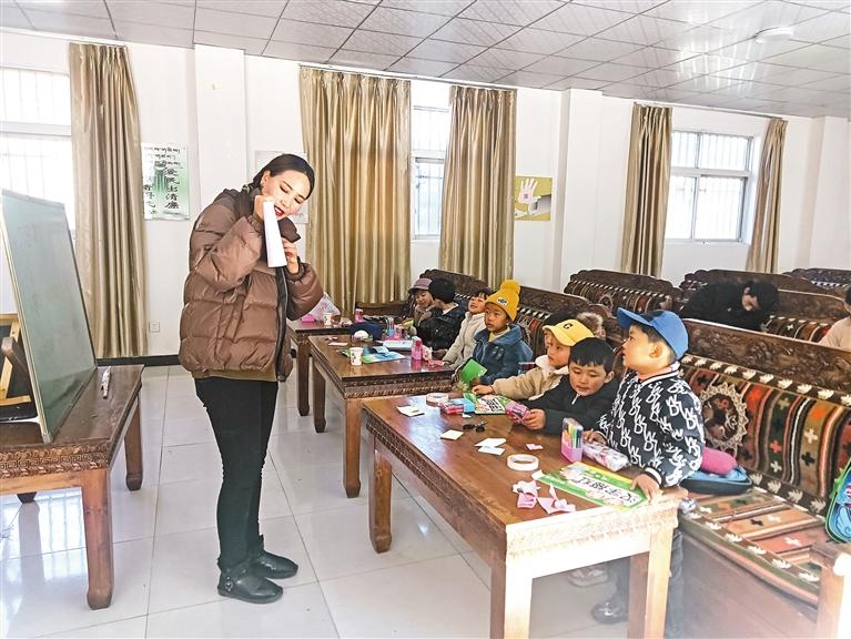 圖為駐村工作隊隊員在給村里的孩子們輔導(dǎo)功課。記者 張猛 攝